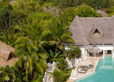 Perched atop gentle cliffs overlooking the northern expanse of Diani Beach, Alfajiri comprises three opulent villas, each reserved entirely for exclusive occupancy. The Swahili term "Alfajiri," translating to "Dawn," is a fitting tribute to its eastward orientation towards the Indian Ocean, a characteristic shared by many coastal retreats in Kenya. Positioned in a prime spot along Diani Beach, the property enjoys a serene setting slightly removed from the hustle, nestled towards the beach's northern end. Elevated above the shoreline on these cliffs composed of weathered coral rag, Alfajiri boasts enhanced seclusion and safety, providing guests with an added layer of tranquility and peace of mind.